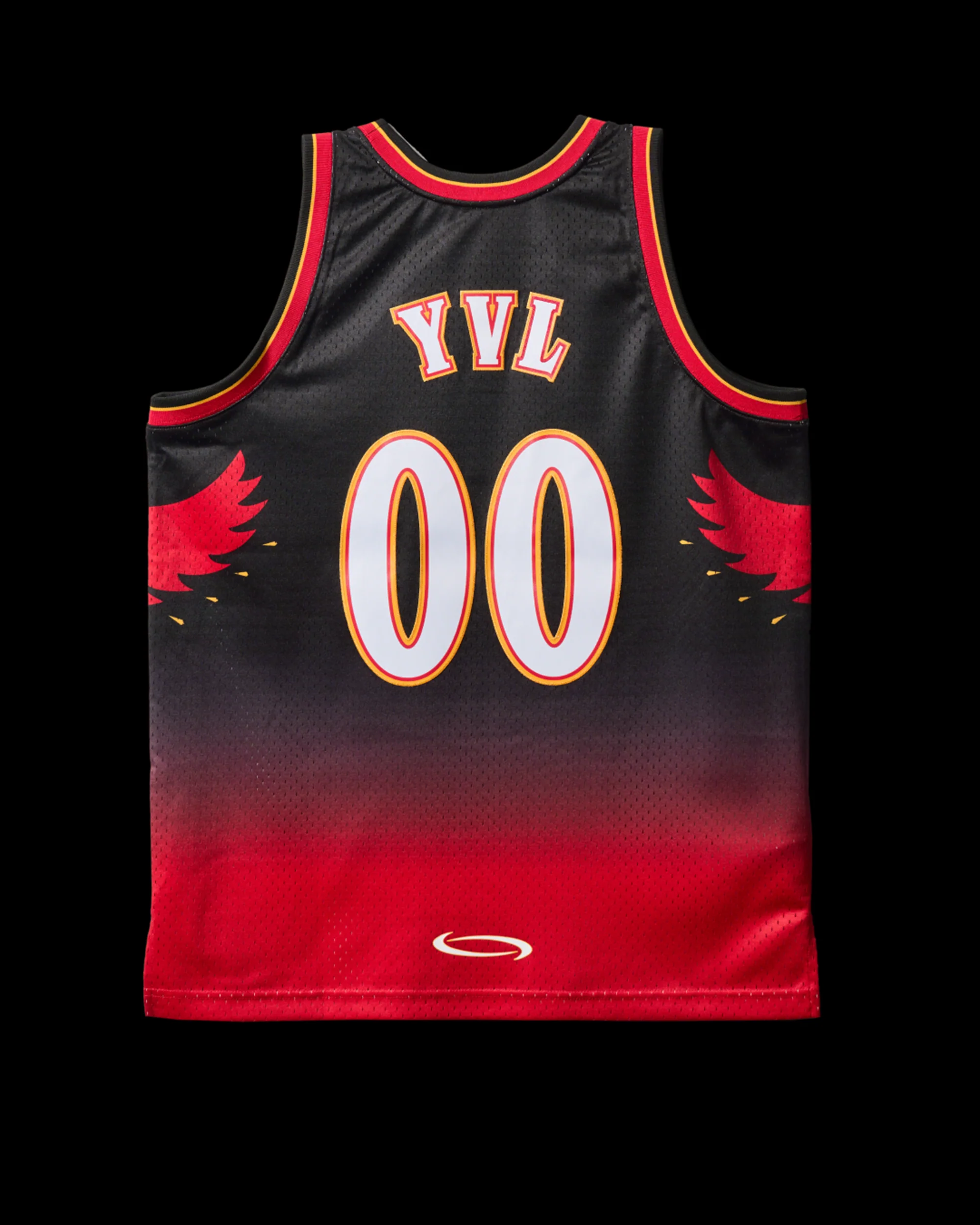 Swingman mesh 100% polyester, sublimated body, screenprinted twill front and back name and number logos, screenprinted brand logo at lower back, woven label and jock tag at front bottom left.